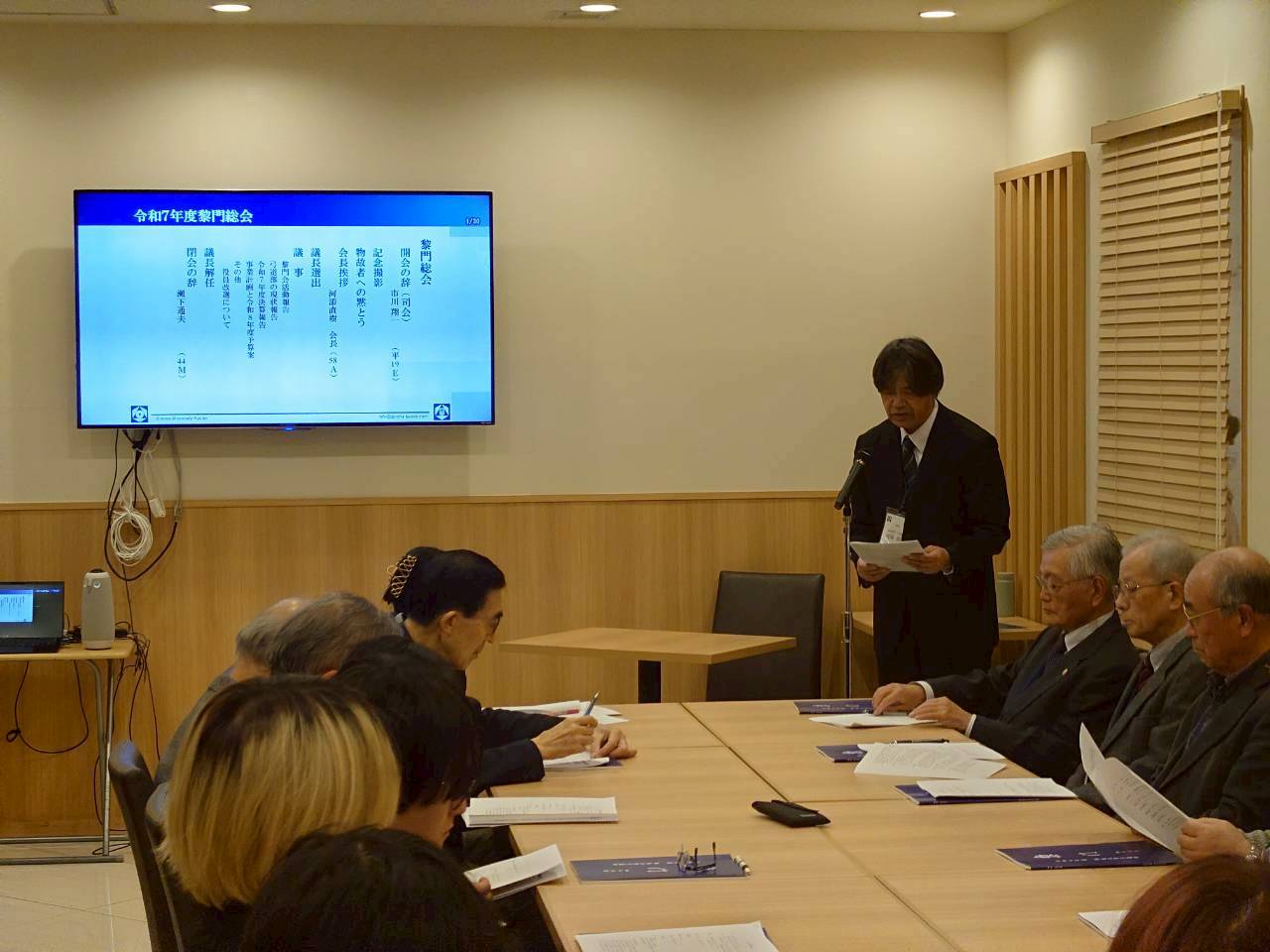 総会では,58A河添直樹会長からのご挨拶,物故者への黙とうに引き続き,議長として修60W5店網 俊安副会長を選出し議事を進め,会長からの黎門会の活動報告と,現役部員からの活動報告を行いました.つぎにH19S市川吉美会計,44M瀬下通夫会計監査やH4M秦 誠一副会長から令和7年度の決算報告,令和8年度の事業計画と予算案を全会一致でご承認いただきました.詳細につきましては,議事録,録画を下記URLにてご覧ください(パスワードは黎門誌閲覧のものと同じです).最後に44M瀬下通夫さんから閉会のお言葉頂き,総会は無事終了しました.